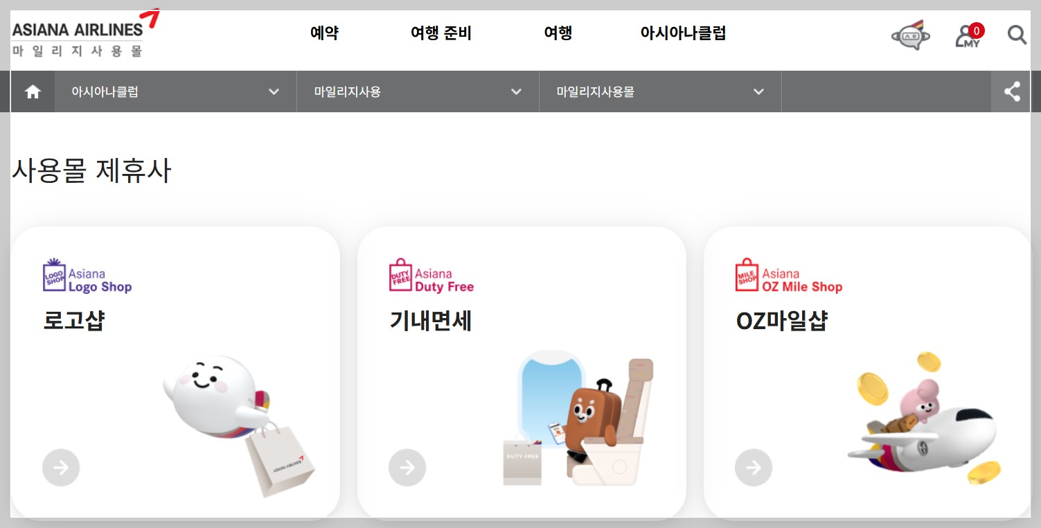 - 마일리지 사용몰: 아시아나항공의 마일리지 사용몰에서 다양한 상품을 마일리지로 구매할 수 있습니다.